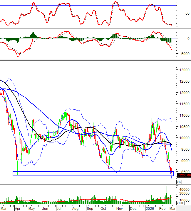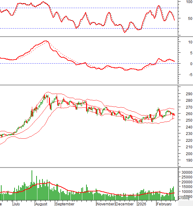 Hiện tại, giá cổ phiếu này tiếp tục bám sát dải dưới (Lower Band) của Bollinger Bands trong khi chỉ báo MACD tiếp tục giảm sau khi cho tín hiệu bán. Điều này cho thấy triển vọng tiêu cực vẫn còn.