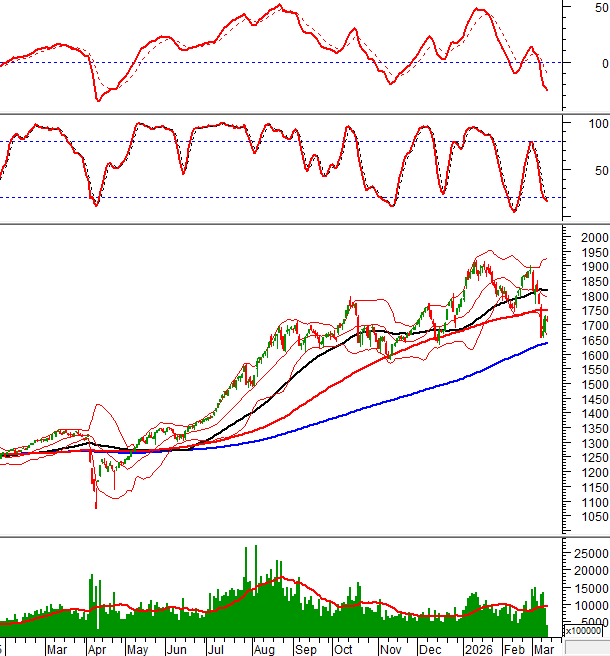 VN-Index rung lắc mạnh và có thể test lại đáy cũ tháng 12/2025 (tương đương vùng 1,630-1,690 điểm) trong thời gian tới. HNX-Index giảm trở lại và khối lượng giao dịch nằm ở mức thấp là một cảnh báo quan trọng.