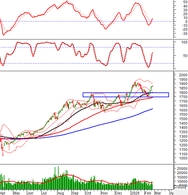 Vùng 1,740-1,795 điểm đã từng đóng vai trò hỗ trợ mạnh trong đợt điều chỉnh đầu tháng 02/2026. Người viết dự kiến vùng này sẽ tiếp tục phát huy tác dụng nếu có sụt giảm bất ngờ xảy ra.