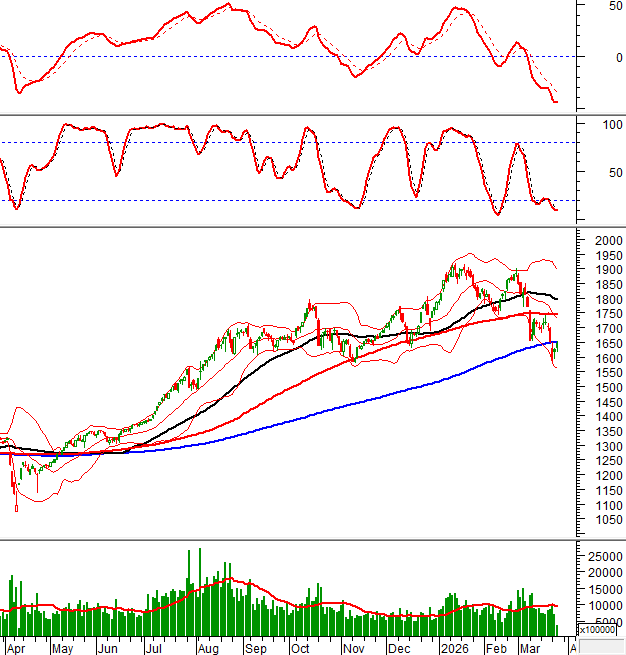 Trong phiên giao dịch sáng ngày 25/03/2026, HNX-Index cũng tăng trưởng tốt và tiến gần đến đường Middle của Bollinger Bands.