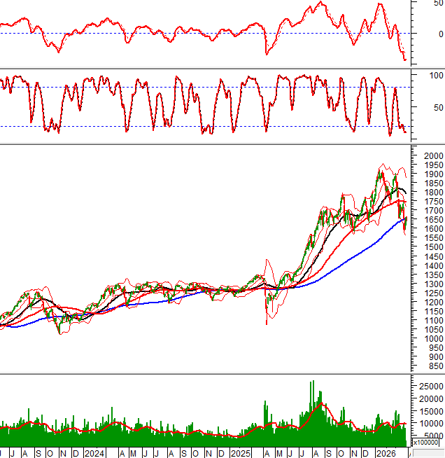 VN-Index test lại đường SMA 200 ngày và điều chỉnh khá mạnh sau đó. HNX-Index cũng rung lắc khi chạm đường Middle của Bollinger Bands.