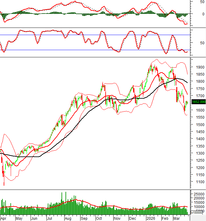 Chỉ số tiếp tục nằm dưới đường Middle của Bollinger Bands trong khi chỉ báo MACD vẫn đang cho tín hiệu bán. Điều này cho thấy rủi ro ngắn hạn vẫn còn.