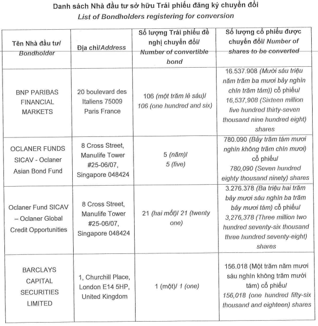 Cũng vào ngày 31/12, với gói trái phiếu chuyển đổi quốc tế 335 triệu USD, HĐQT Novaland đã thông qua kế hoạch phát hành cổ phiếu để chuyển đổi một phần trái phiếu theo các thông báo chuyển đổi.