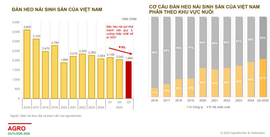 Diễn biến phức tạp của dịch ASF đã xóa tan mọi thành tích tan nái trước đó tại các tỉnh miền Bắc. Tổng đàn nái Việt Nam bị kéo về mức thấp nhất kể từ 2021, chỉ cao hơn so với 2020.