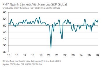 Chỉ số Nhà Quản trị Mua hàng (PMI®) ngành sản xuất Việt Nam của S&P Global đã tăng lên 54.3 điểm trong tháng 2, so với mức 52.5 điểm của tháng 1 và đã đạt mức cao nhất trong bốn tháng. Chỉ số PMI cho thấy sự cải thiện đáng kể hàng tháng về sức khỏe của ngành, và từ đó kéo dài chuỗi thời gian cải thiện điều kiện kinh doanh hiện tại thành tám tháng.