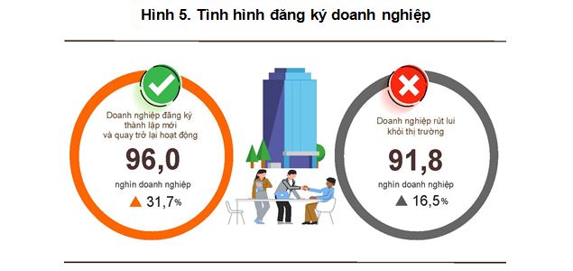 Theo số liệu của Cục Thống kê, tổng số doanh nghiệp thành lập mới và quay trở lại hoạt động trong quý 1/2026 lên 96 ngàn doanh nghiệp, tăng 31.7% so với cùng kỳ năm 2025. Bình quân một tháng có 32 ngàn doanh nghiệp thành lập mới và quay trở lại hoạt động.