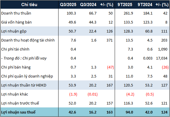 Kết quả NNC lãi sau thuế gần 43 tỷ đồng trong quý 3/2025, gấp 2.6 lần cùng kỳ, đồng thời đánh dấu quý lãi nhiều nhất kể từ quý 4/2018.