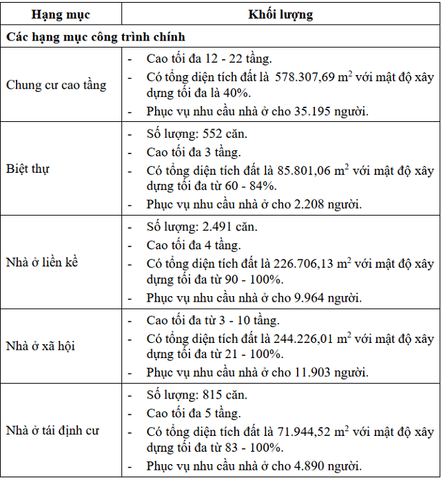 Diện tích gần 880ha, quy mô dân số 135 ngàn người. Cơ cấu sử dụng đất gồm 268.2ha dành cho nhà ở; trong đó nhà ở thấp tầng 155.4ha, nhà ở liền kề 112ha, nhà ở biệt thự 43.3ha, nhà ở cao tầng 36.3ha. Đất đào tạo, nghiên cứu gần 151.6ha, giáo dục 30.9ha, thể dục thể thao 13.9ha.