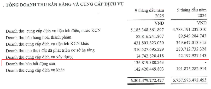 Lũy kế 9 tháng, doanh thu thuần hơn 6,304 tỷ đồng, tăng 10%. Trong đó, chiếm tới 82% đến từ doanh thu tiện ích điện, nước khu công nghiệp (KCN), tăng 8% so với cùng kỳ; doanh thu bất động sản phát sinh gần 137 tỷ đồng. Lãi sau thuế hơn 1.1 ngàn tỷ đồng, tăng 22%.