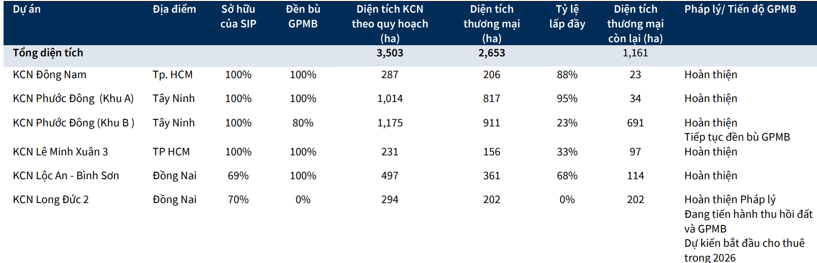 | Quỹ đất KCN của SIP   Nguồn: KBSV |