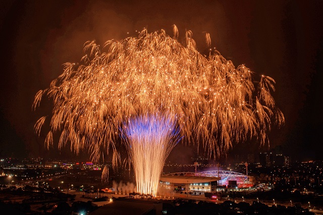Những ngả đường, tòa nhà xung quanh SVĐ Mỹ Đình được lấp đầy bởi hàng vạn khán giả, không cần phải vào sân vẫn được ngắm pháo hoa xuyên suốt chương trình. Nhiều người dân Thủ đô phải thốt lên “Chưa bao giờ được ngắm pháo hoa đẹp như thế!”. Đó là bởi Sun Group đã mang đến những kỹ thuật bắn pháo hoa hiện đại bậc nhất, nhiều chủng loại pháo lần đầu tiên xuất hiện tại Việt Nam. Từ hiệu ứng thị giác như tạo hình trái tim, ngôi sao, vương miện hoa cẩm tú cầu, đến hiệu ứng chuyển động biến hình phong phú, hiệu ứng khói màu 7 sắc cầu vồng, âm thanh sói hú… Hệ thống lập trình hiện đại cho phép căn thời điểm kích nổ chính xác gần như tuyệt đối, giúp pháo khớp nhạc gần như tức thời - một tiêu chuẩn chỉ thấy ở các Festival pháo hoa lớn trên thế giới.