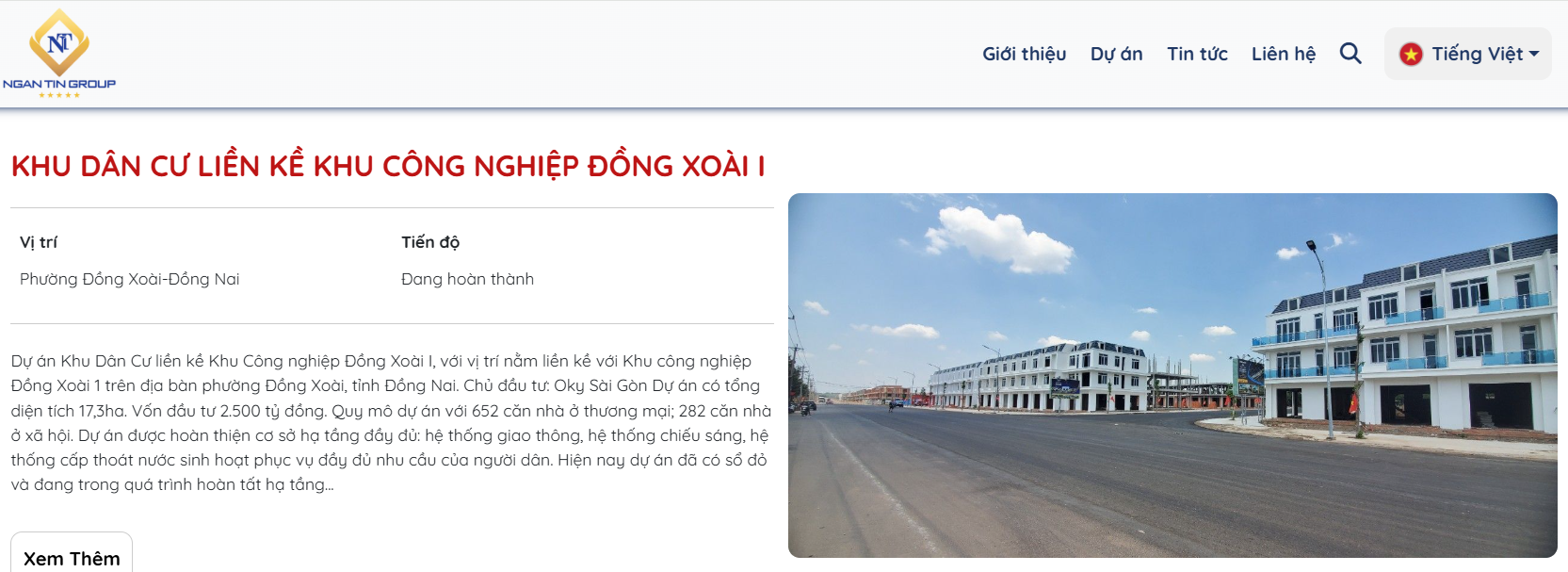 Tập đoàn Đầu tư Ngân Tín thành lập vào tháng 12/2009 với tên gọi ban đầu là Công ty TNHH Ngân Tín. Theo thông tin giới thiệu trên website, doanh nghiệp hoạt động trong lĩnh vực phân phối kinh doanh xăng dầu và đầu tư phát triển các dự án bất động sản. Tại thời điểm tháng 4/2024, vốn điều lệ của Công ty 1,120 tỷ đồng. Tập đoàn này cũng thể hiện dự án khu dân cư liền kề KCN Đồng Xoài I là một trong những dự án của mình.