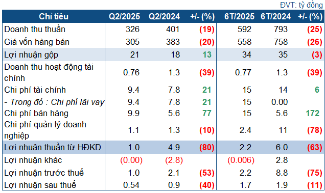 Trong quý 2, TDG đạt 326 tỷ đồng doanh thu thuần, giảm 19%. Giá vốn giảm tới 20% nên sau khấu trừ, lãi gộp tăng nhẹ 13% lên 21 tỷ đồng.