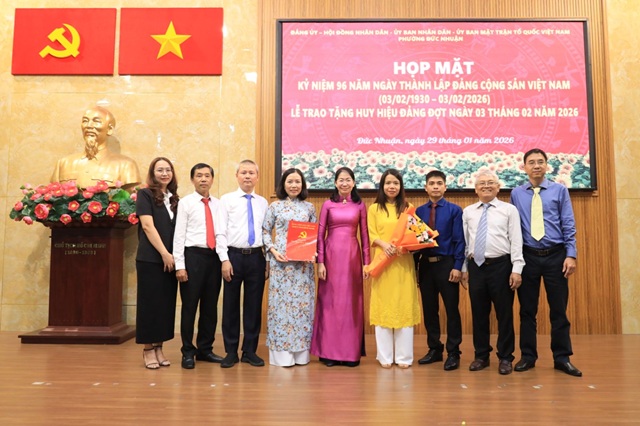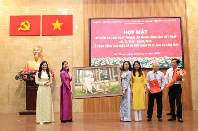 Chiều 29/01, Đảng ủy phường Đức Nhuận tổ chức họp mặt kỷ niệm 96 năm Ngày thành lập Ðảng Cộng sản Việt Nam (03/02/1930 - 03/02/2026). Tham dự buổi lễ có Thiếu tướng Vũ Văn Điền - Tư lệnh Bộ Tư lệnh TP.HCM, đồng chí Phan Thị Thanh Phương - Bí thư Đảng ủy, Chủ tịch HĐND phường Đức Nhuận, đồng chí Nguyễn Thị Thanh Thảo - Phó Bí thư Đảng ủy, Chủ tịch UBND phường Đức Nhuận.