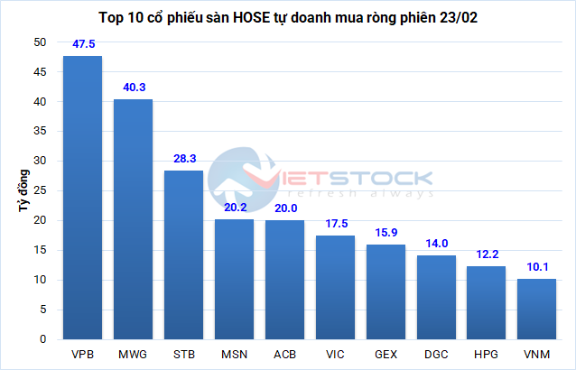 Trong khi đó, tự doanh các công ty chứng khoán quay lại mua ròng 161 tỷ đồng trên HOSE. Dòng tiền tập trung vào VPB (48 tỷ đồng), MWG (40 tỷ đồng) và STB (28 tỷ đồng).