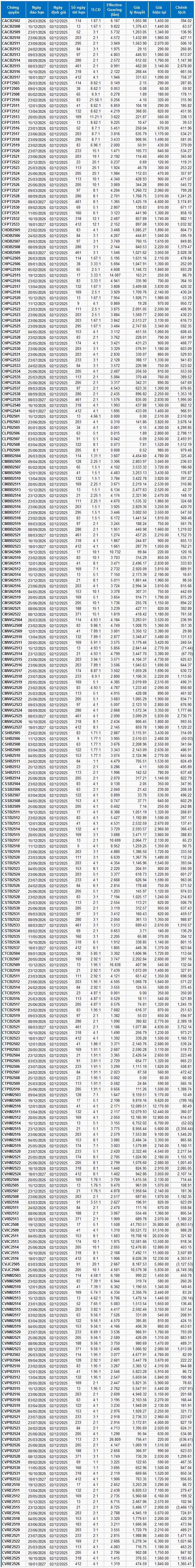 Dựa trên phương pháp định giá phù hợp với thời điểm khởi đầu là ngày 02/12/2025, mức giá hợp lý của các chứng quyền đang được giao dịch trên thị trường được thể hiện như sau: