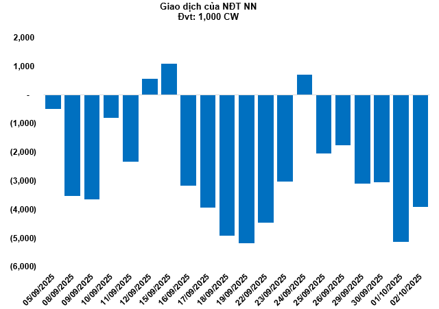 Thị trường chứng quyền ngày 03/10/2025: Khối ngoại tiếp tục bán ròng