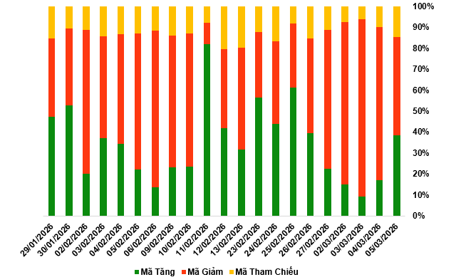 Độ rộng thị trường trong 20 phiên gần nhất. Đvt: Phần trăm