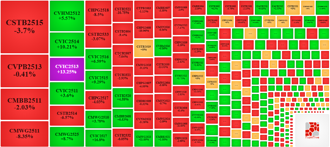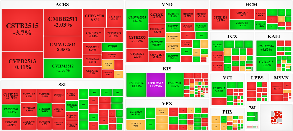 Trong phiên giao dịch ngày 05/03/2026thị trường diễn biến phân hóa nhưng bên bán có phần lấn lướt hơn khiến phần lớn các mã chứng quyền giảm giá. Cụ thể, các mã chứng quyền lớn trong nhóm giảm giá là CSTB2515, CVPB2513, CMBB2511 và CMWG2511.