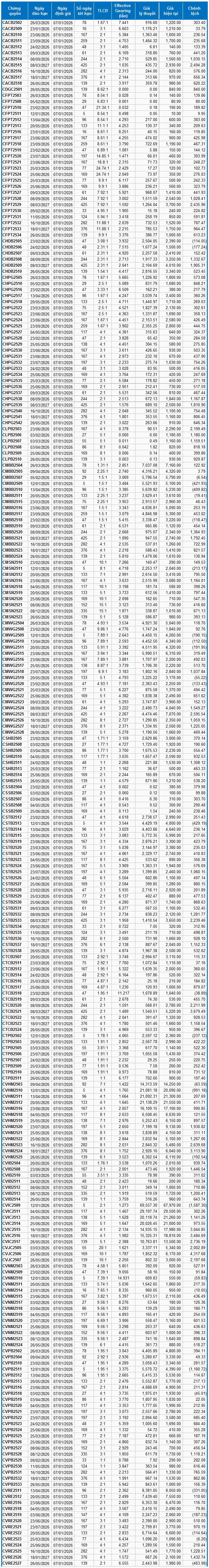 Những mã chứng quyền có effective gearing càng cao thì biến động tăng/giảm theo chứng khoán cơ sở sẽ càng lớn. Hiện CVNM2510 và CTCB2518 là hai mã chứng quyền có tỷ lệ effective gearing cao nhất thị trường.