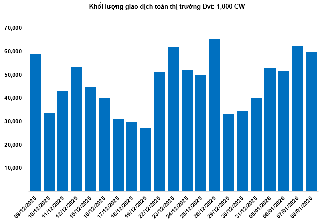 Thị trường chứng quyền ngày 09/01/2026: Khối ngoại quay lại mua ròng mạnh