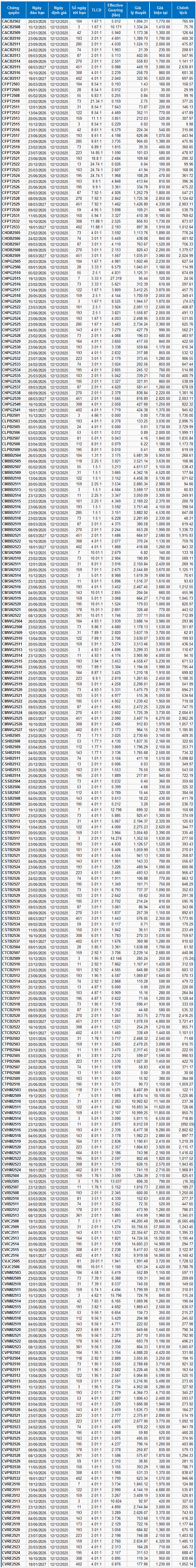 Dựa trên phương pháp định giá phù hợp với thời điểm khởi đầu là ngày 12/12/2025, mức giá hợp lý của các chứng quyền đang được giao dịch trên thị trường được thể hiện như sau: