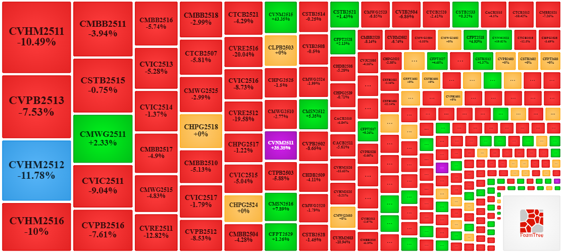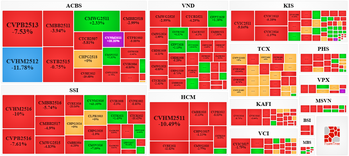 Trong phiên giao dịch ngày 14/01/2026, bên bán quay lại dẫn dắt thị trường khiến phần lớn các mã chứng quyền giảm giá. Cụ thể, các mã chứng quyền lớn trong nhóm giảm giá là CVHM2511, CVPB2513, CMBB2511 và CSTB2515.