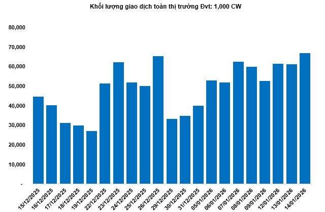 Thị trường chứng quyền ngày 15/01/2026: Thanh khoản toàn thị trường tiếp tục cải thiện