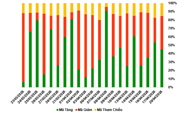 Kết thúc phiên giao dịch ngày 20/04/2026, toàn thị trường có 120 mã tăng, 105 mã giảm và 41 mã tham chiếu.
