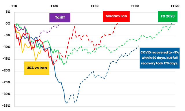 Tuy nhiên, điểm đáng lưu ý là thời gian điều chỉnh đang kéo dài hơn so với các cú sốc gần đây.