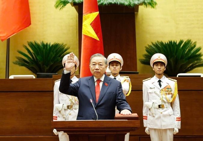 Ngay sau khi được bầu, Chủ tịch nước Tô Lâm thực hiện nghi thức trước Quốc hội. Ông tuyên thệ: Dưới cờ đỏ sao vàng thiêng liêng của Tổ quốc, trước Quốc hội, đồng bào và cử tri, tôi - Chủ tịch nước Cộng hòa xã hội Chủ nghĩa Việt Nam xin tuyên thệ tuyệt đối trung thành với Tổ quốc, với nhân dân, với Hiến pháp nước Cộng hòa xã hội chủ nghĩa Việt Nam; nỗ lực phấn đấu hoàn thành tốt nhiệm vụ mà Đảng, Nhà nước và nhân dân giao phó.