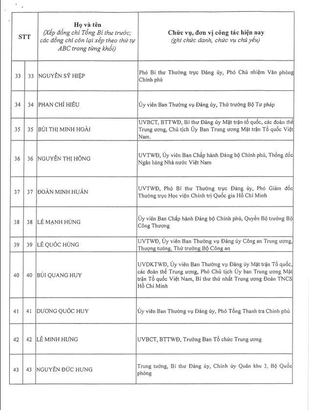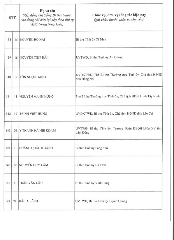 Chiều tối 22/01, Đại hội XIV của Đảng công bố và thông qua danh sách Ban Chấp hành Trung ương Đảng khóa XIV. Tổng Bí thư Tô Lâm tái đắc cử Ủy viên Trung ương Đảng khóa XIV.