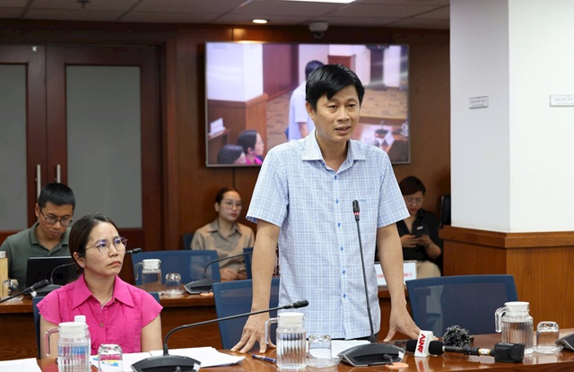 Ông Trần Nhân Nghĩa - Phó Chi cục trưởng Chi cục Thủy lợi, Sở Nông nghiệp và Môi trường TP HCM - thông tin về biện pháp ứng phó ảnh hưởng của bão số 13 tại buổi họp báo chiều 06/11. Ảnh: Vân Phạm