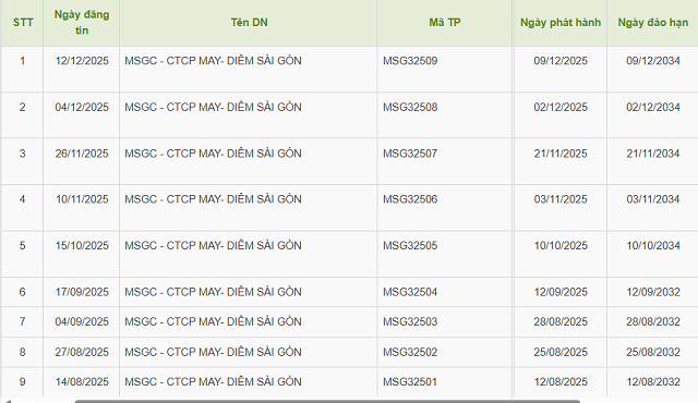 Trong cùng giai đoạn, hàng loạt đơn vị thuộc hệ sinh thái của TNR Holdings Việt Nam đã đưa ra thị trường các lô trái phiếu với đặc điểm khá tương đồng. Đơn cử như May - Diêm Sài Gòn thu về thêm hơn 1.6 ngàn tỷ đồng trong tháng 12. Tính từ tháng 8 đến nay, tổng giá trị trái phiếu doanh nghiệp này thu về đã vượt 6.5 ngàn tỷ đồng, với kỳ hạn các lô mới kéo dài tới 9 năm.