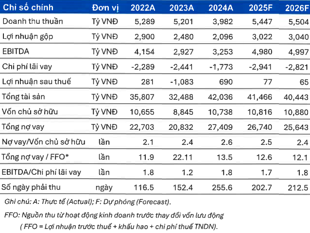 Trong báo cáo công bố tháng 12/2025, hãng xếp hạng tín nhiệm nhận định rủi ro tài chính của TREC ở mức rất cao, phản ánh mức độ sử dụng đòn bẩy tài chính lớn và kéo dài cùng với khả năng chi trả lãi vay thấp hơn so với trung bình ngành. Việc đẩy mạnh đầu tư vào các dự án năng lượng tái tạo lớn làm quy mô nợ vay của Công ty tăng đáng kể những năm qua. Tỷ lệ nợ vay/vốn chủ sở hữu duy trì 2.5 – 2.6 lần giai đoạn 2023-2024, cao hơn trung bình ngành. Bên cạnh đó, nợ vay/EBITDA cũng cao, khoảng 8.4 lần trong năm 2024 sau khi hợp nhất Công ty Điện gió Trung Nam Đắk Lắk 1. Khả năng chi trả lãi vay cũng suy giảm khi tỷ lệ EBITDA/chi phí lãi vay chỉ đạt 1.2 lần trong giai đoạn 2023-2024.