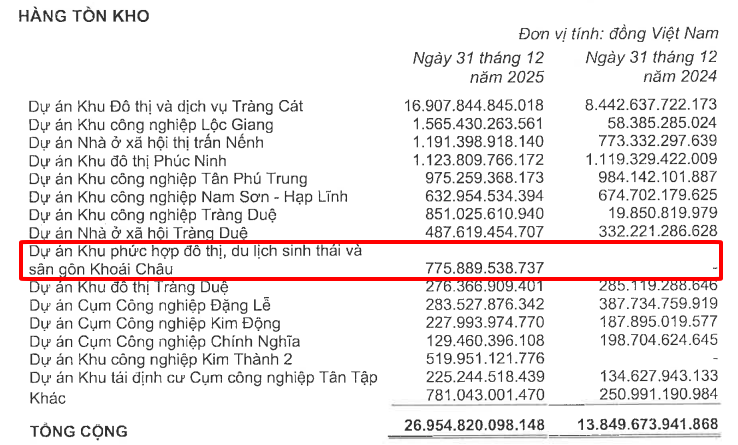 Theo BCTC hợp nhất quý 4/2025, Kinh Bắc đã đầu tư gần 776 tỷ đồng vào dự án Trump International Hung Yen.