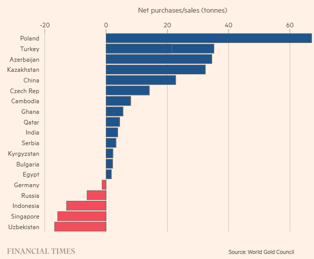 Nhu cầu vàng của các ngân hàng trung ương được báo cáo từ đầu năm đến nay. Nguồn: Hội đồng Vàng Thế giới