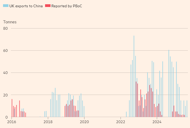 Xuất khẩu vàng của Anh sang Trung Quốc tương quan với các giai đoạn mua vào chính thức