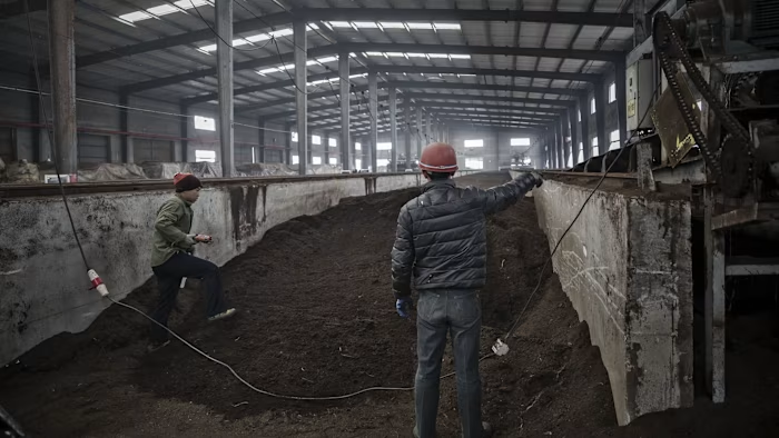 Các nhân viên tại nhà máy phân bón ở Sơn Đông