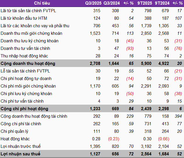 Kết quả kinh doanh quý 3 và lũy kế 9 tháng năm 2025 của VPS