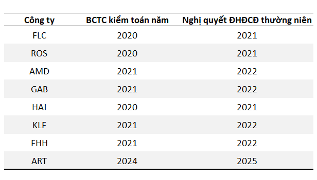 Tình trạng công bố BCTC và nghị quyết ĐHĐCĐ thường niên của các công ty trong hệ sinh thái FLC