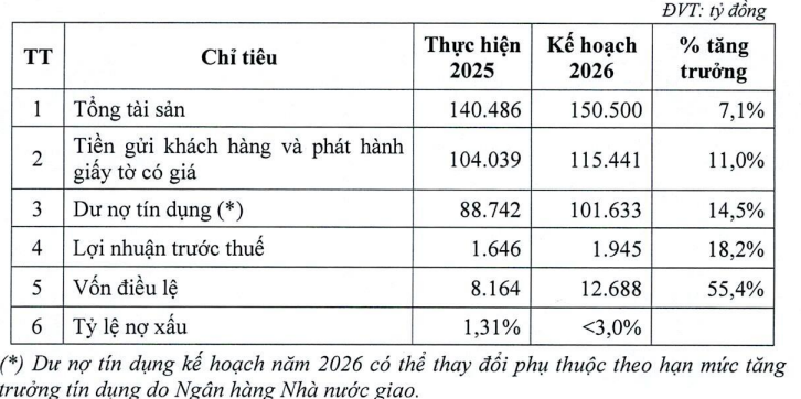 Năm 2026, VAB dự kiến tăng vốn điều lệ từ mức 8,164 tỷ đồng lên 12,688 tỷ đồng thông qua 3 phương án.