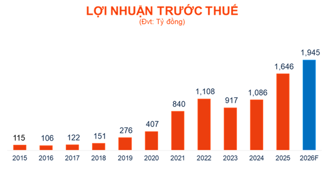Lợi nhuận trước thuế mục tiêu đạt 1,945 tỷ đồng, tăng 18% so với kết quả năm 2025.