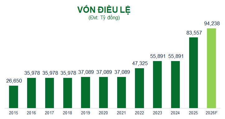 Về phương án tăng vốn điều lệ, Ngân hàng dự kiến phát hành tối đa gần 1.07 tỷ cp với tổng giá trị tối đa 10,687 tỷ đồng. Tỷ lệ phát hành sẽ căn cứ theo thời điểm phát hành thực tế.