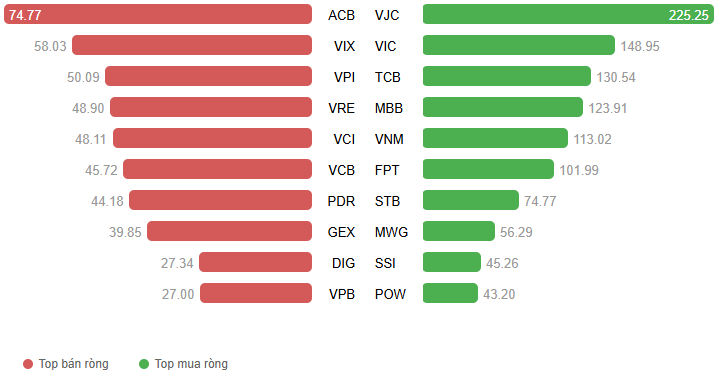 Giá trị giao dịch ròng theo mã cổ phiếu. Đvt: Tỷ đồng