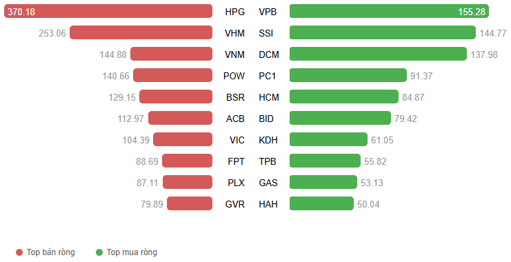 Giá trị giao dịch ròng theo mã cổ phiếu. Đvt: Tỷ đồng