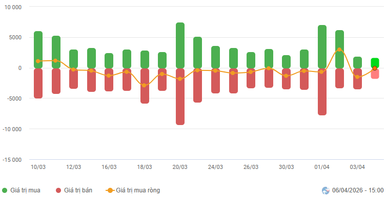 Biến động của dòng tiền từ khối ngoại: Khối ngoại bán ròng trong phiên giao dịch ngày 06/04/2026. Nếu nhà đầu tư nước ngoài duy trì hành động này trong những phiên tới thì tình hình sẽ càng bi quan hơn.