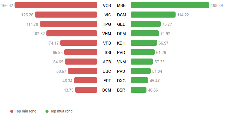 Giá trị giao dịch ròng theo mã cổ phiếu. Đvt: Tỷ đồng