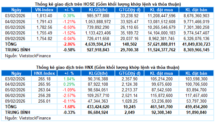 I. PHÂN TÍCH THỊ TRƯỜNG CHỨNG KHOÁN CƠ SỞ NGÀY 09/02/2026