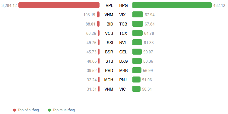 Giá trị giao dịch ròng theo mã cổ phiếu. Đvt: Tỷ đồng